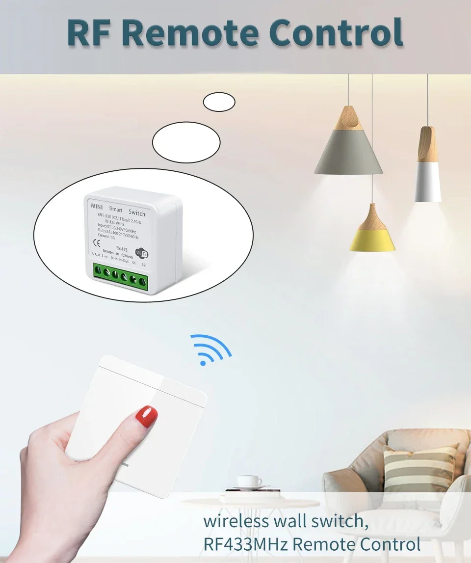 The relay controller is wifi+rf,the wall switch is rf only.Wall switch itself cannot control lights on off.It needs to work with wifi+rf receiver together.